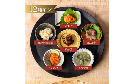 - 【10月発送】独身貴族(12本) 海鮮詰合せ 12本 ごはん お供 贈答 晩酌 塩辛 昆布 いか うに 数の子 ほたて たこ 化粧箱 冷蔵 瓶 珍味_HD013-001-10