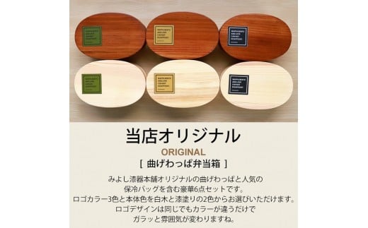 みよし漆器本舗 曲げわっぱ 6点セット 英字ロゴお弁当箱 600ml 約17.5×11.5×高さ6.5cm 小判型 弁当箱 1段 セット 杉 モカ 漆塗り