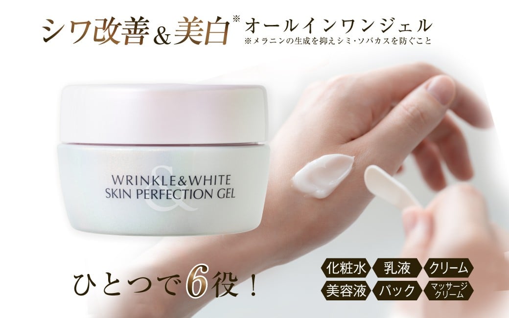日本初のシワ改善と美白のダブル効果が認められた薬用オールインワンジェルです。化粧水・乳液・クリーム・美容液・パック・マッサージクリームの6役を兼ね備えています。季節に合わせてテクスチャーが変化し、夏はみずみずしく冬はしっとりとした使い心地になるのが特徴です。ベタつきにくく肌馴染みが良いので、オールシーズン使いやすいジェルです。