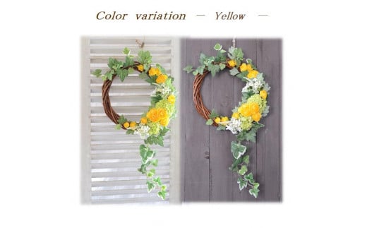- 【イエロー】【完成品】 流れるアイビーとラナンキュラス 「 スイング ガーデン リース 」