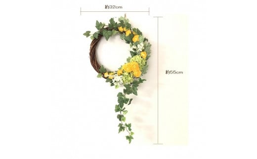 【イエロー】【完成品】 流れるアイビーとラナンキュラス 「 スイング ガーデン リース 」