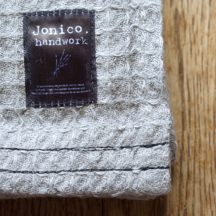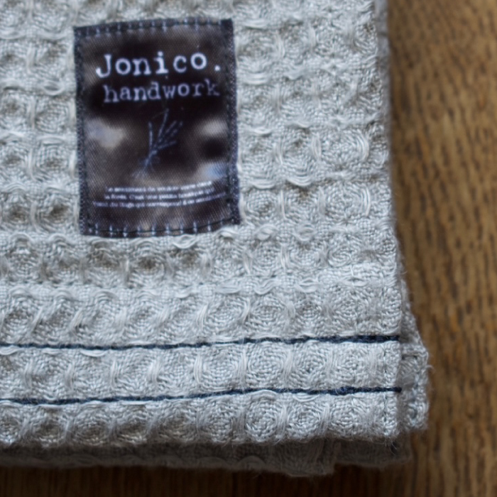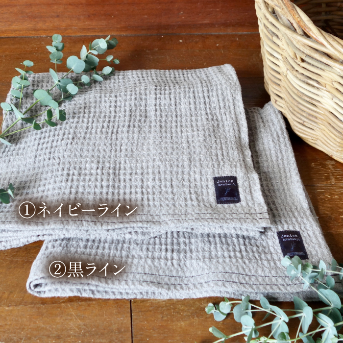 - 【2色から選べる!】ふんわり育つワッフルリネンのライン入り バスタオル(大きめマス) 【Jonico.handwork】 [AKGD004]