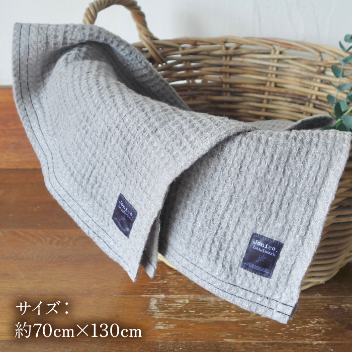 【2色から選べる!】ふんわり育つワッフルリネンのライン入り バスタオル(大きめマス) 【Jonico.handwork】 [AKGD004]