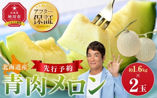 - 【先行予約】 北海道産青肉メロン約1.6kg×2玉 (2026年7月中旬から発送予定)【 果物 くだもの フルーツ メロン 青肉 青肉メロン 旬 お取り寄せ 甘い 北海道産 旭川市 北海道 】_05291