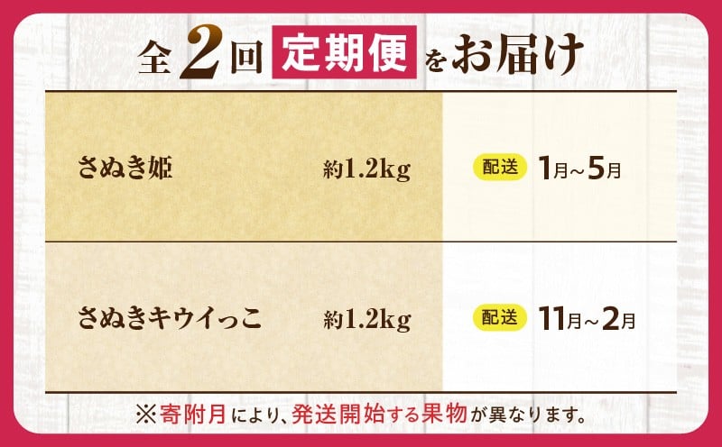 - とれたて果物 2回定期便E 果物 フルーツ 果物定期便 フルーツ定期便 定期便 いちご キウイ濃厚 旬の果物 定期 人気 おすすめ 贈答 贈り物 青果物 糖度 香川県 _mk165-t055