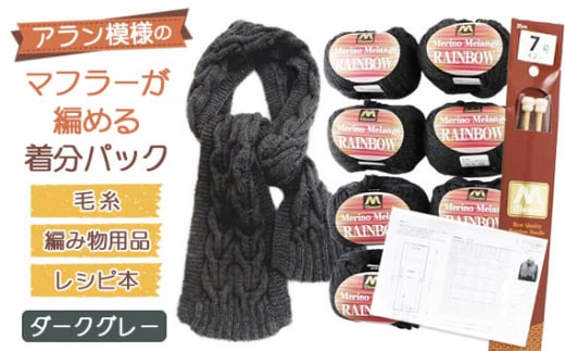 - 毛糸7玉で編めるアラン編みマフラー ダークグレー・着分パック【毛糸・編み物用品・レシピ本セット】 / 毛糸 編み物 手編み 手作り ハンドメイド 編み図 レシピ 着分セット 羊毛 肌触り 高品質 ケーブル編み アラン模様 マフラー 手芸 ユザワヤ 送料無料 No.052