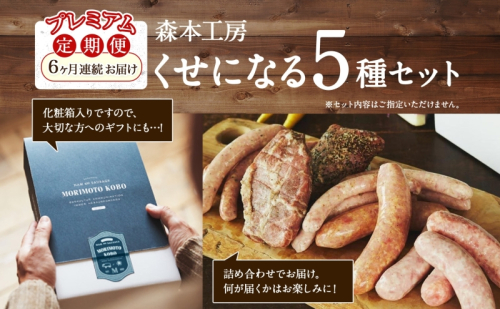 - 定期便 6ヶ月 ハム ソーセージ くせになる定期プレミアム 6ヶ月コース 化粧箱入り 肉 フランクフルト ベーコン BBQ 焼肉 おつまみ ギフト グルメ お取り寄せ 贈答用 ご褒美 本格 手作り 本場 ドイツ 人気 送料無料 森本工房 岐阜県 揖斐川町