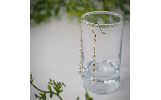 - < 甲府ジュエリー >K18 あこや真珠 デザイン パールピアス【JE275】