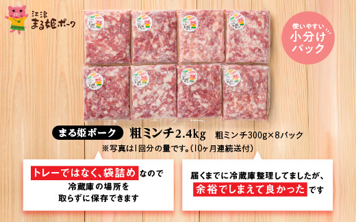 【9/30迄の限定寄附額】【10カ月定期便】まる姫ポーク 粗ミンチ 2.4kg(300g×8パック)×10回(24kg)【AK-36】|送料無料 国産 まる姫ポーク 豚肉 ぶた肉 ぶたにく 肉 粗ミンチ 挽肉 挽き肉 ミンチ ハンバーグ そぼろ 料理 便利 使いやすい 多用途 小分け パック 江津市|