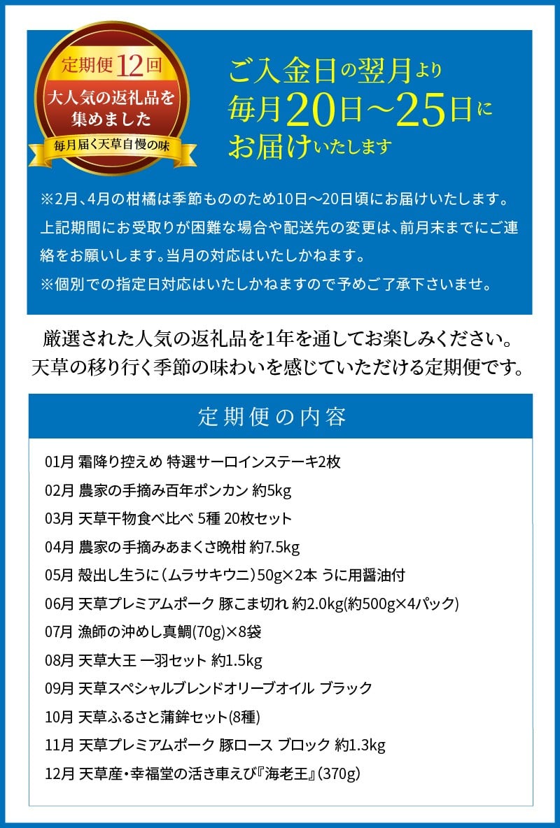 S999-T02_【定期便12回】天草まるごと定期便!12か月間毎月お届け(数量限定!)