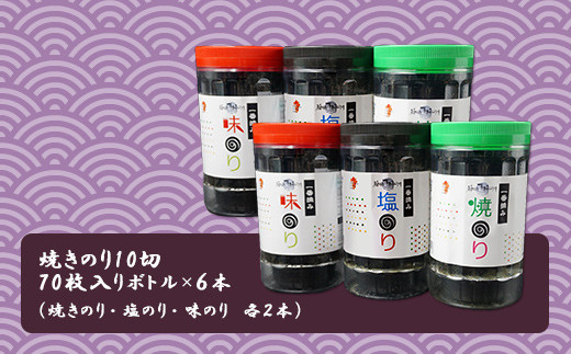 2B5 福岡有明のりセット⑤(焼きのり10切70枚入りボトル×6本)