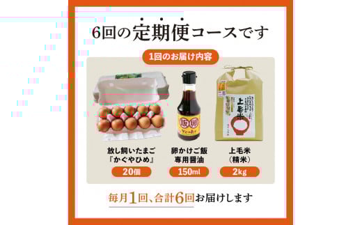 - 【定期便】上毛町産の「たまごかけご飯セット」(卵20個・米2kg・専用醤油)6回(毎月)コース 06T-006