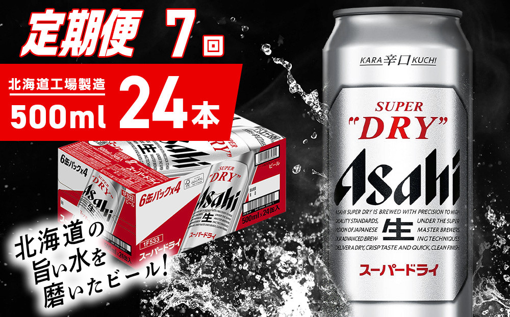 【定期便 7ヶ月】アサヒスーパードライ<500ml>24缶 1ケース 北海道工場製造 定期配送 毎月届くビール 北海道 アサヒビール スーパードライ アサヒ 酒 アルコール 生ビール 缶 贈答 北海道 札幌市