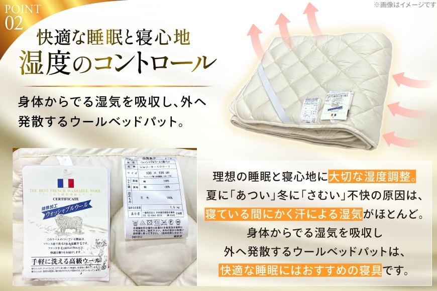 プレミアム フランスウール ベットパッド 一層式 シングル (100×198cm) ウォッシャブル対応 [寝具インテリアやない 福岡県 筑紫野市 21761239] ベッドパッド ウール 寝具