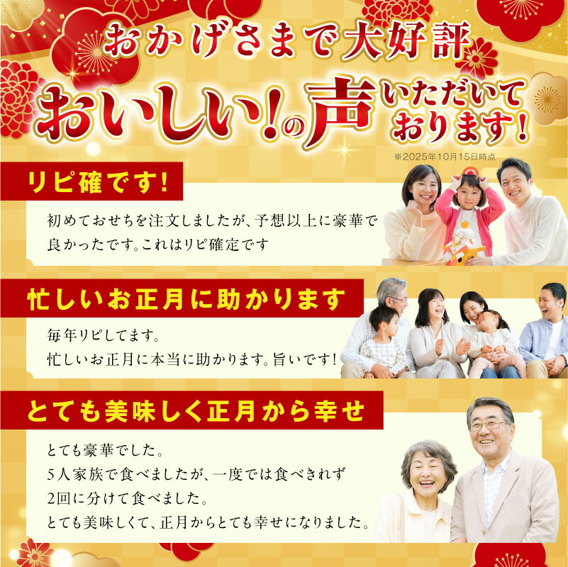 【ふるさと納税】おせち 板前魂の飛翔 2026年 和洋中華風 三段重 特大 8.5寸 40品 5人前 期間限定 おせち料理 板前魂 三段 和風 洋風 中華風 予約 盛り付け済み 冷凍 迎春 新春 お取り寄せ 大阪府 泉佐野市 送料無料 先行予約 年内発送 肉