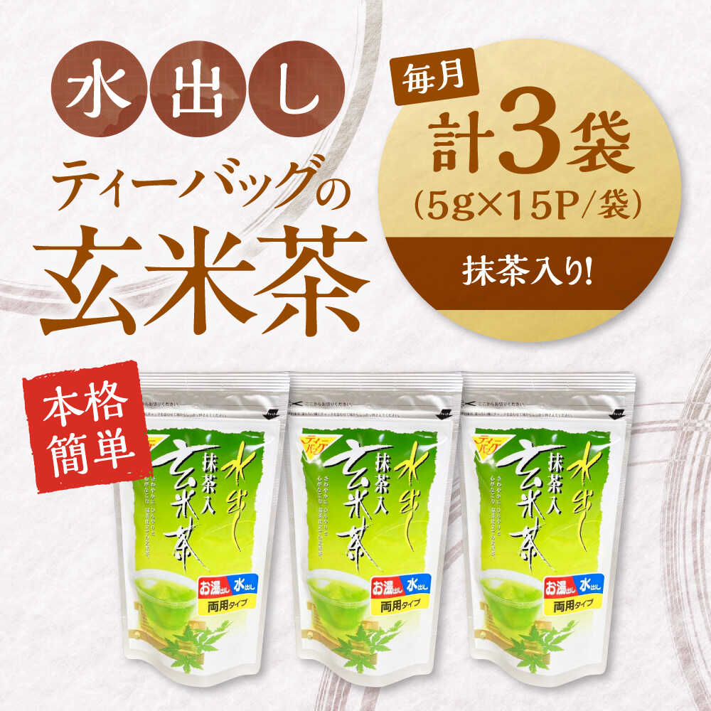 【ふるさと納税】【全6回定期便】水出し玄米茶(5g×15P)3袋 滋賀県長浜市/株式会社浜宇治園[AQBU020]玄米茶 ティーバッグ 水出し 定期便 飲料 茶葉 浜宇治園 滋賀 長浜人気 おすすめ 冷茶 茶葉 飲み物 飲料 水分補給 みずだし
