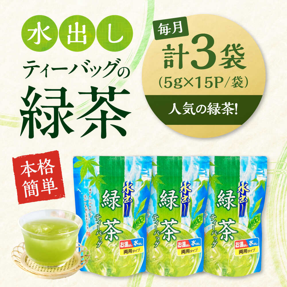 【ふるさと納税】【全6回定期便】水出し緑茶(5g×15P)3袋 滋賀県長浜市/株式会社浜宇治園[AQBU017]お茶 緑茶 茶葉 ティーバッグ 水出し 定期便 浜宇治園 滋賀 長浜 人気 おすすめ 飲み比べ 冷茶 茶葉 飲み物 飲料 水分補給 みずだし
