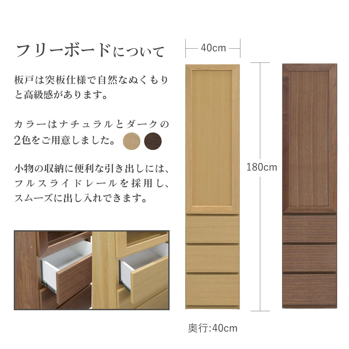 【ふるさと納税】Ron(ロン)幅40フリーボード引出し (NA・DK) 板戸仕様【北海道・東北・沖縄・離島不可】CN129