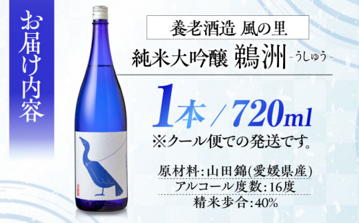 日本酒 養老酒造 純米大吟醸『鵜洲』720ml×1本 愛媛県大洲市/一般社団法人キタ マネジメント(大洲まちの駅あさもや)[AGCP804] 酒 地酒 クラフト 日本酒 にごり酒 飲み比べ 大洲市産 産地直送 おすすめ 人気 お取り寄せ 送料無料 贈答 ギフト