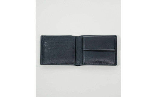 - キプリス本革製二つ折り小銭入れ付財布 カラー:ネイビー【革小物 革製品 ソフトシュリンクレザー 牛革 しっとり シーズンレス 職人 財布】