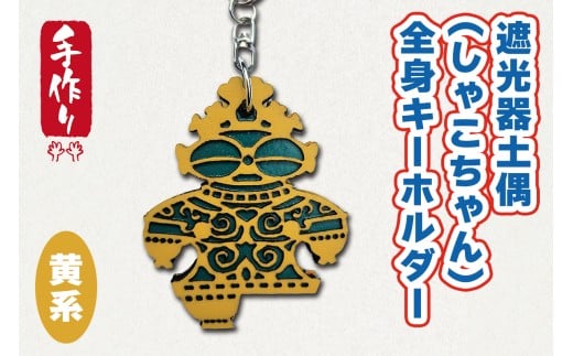 遮光器土偶 (しゃこちゃん) 全身キーホルダー (黄系) |キーホルダー レーザーカット 小物 鍵 遮光器土偶 しゃこちゃん 縄文 土偶 どぐう青森県 つがる市 世界遺産 [0872]