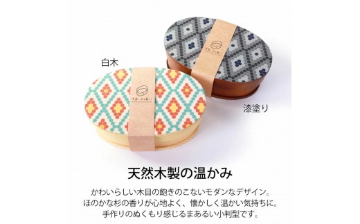 - みよし漆器本舗 曲げわっぱ お弁当箱 600ml 約17.5×11.5×高さ6.5cm 小判型 弁当箱 一段 1段 北欧 レトロタイル 漆塗り