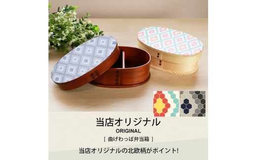 みよし漆器本舗 曲げわっぱ お弁当箱 600ml 約17.5×11.5×高さ6.5cm 小判型 弁当箱 一段 1段 北欧 レトロタイル 漆塗り