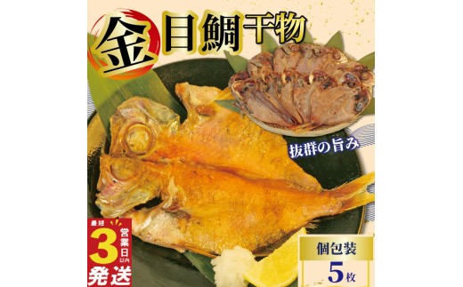 - 金目鯛 干物 5枚 国産 鯛 個包装 焼くだけ 簡単調理 3営業日 以内 スピード発送 お祝い ギフト 贈答用 ひもの 惣菜 おかず 静岡 沼津