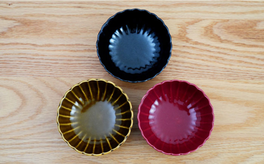 - 【波佐見焼】花しのぎ 丸小付 小鉢 (鶯茶・墨・紅) 3点セット 食器 皿 【団陶器】 [PB98]