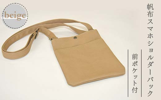 - 帆布 スマホショルダーバック 前ポケット付 ベージュ (8号帆布) かしわや鞄店 F3S-2473
