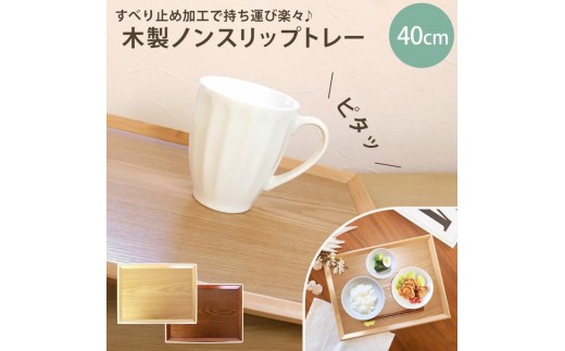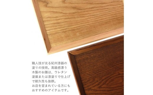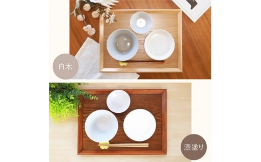 - みよし漆器本舗 トレー お盆 木製 40cm ノンスリップ 長角膳 大きい 白木