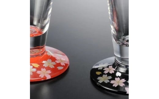 - みよし漆器本舗 ビールグラス ペア 紀州塗り ぬりもん de Verre 蒔絵 桜 黒 赤 285ml