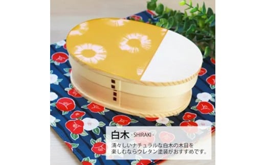- みよし漆器本舗 曲げわっぱ お弁当箱 600ml 約17.5×11.5×高さ6.5cm 小判型 弁当箱 1段 染物風 白木
