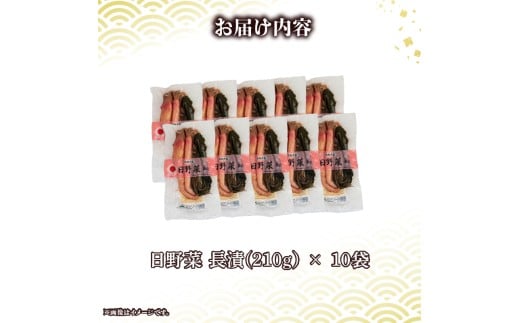 - 日野菜漬 長漬( 210g × 10袋入り )漬物 漬け物 惣菜 おかず ご飯 の お供 白米 にあう つけもの 甘酢漬け 伝統 野菜 お家用 贈答 贈り物 ギフト 蕪 滋賀県 日野町 ふるさと納税