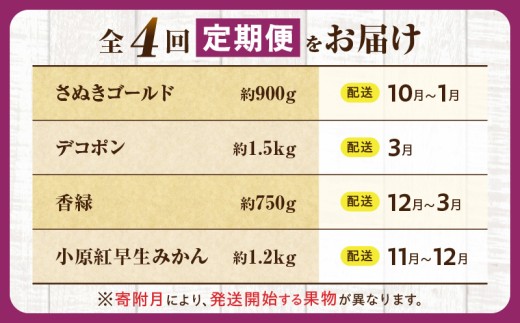 - とれたて果物 4回定期便D 果物 フルーツ 果物定期便 フルーツ定期便 定期便 キウイ デコポン みかん 濃厚 旬の果物 定期 人気 おすすめ 贈答 贈り物 青果物 糖度 香川県 _mk165-t077