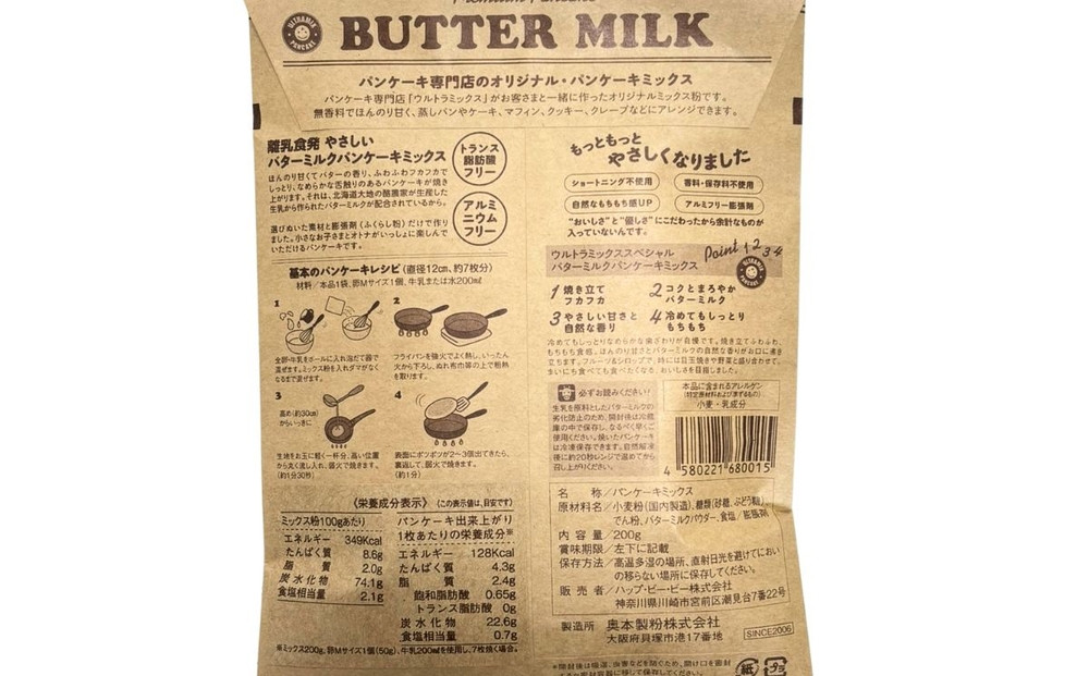 - パンケーキ パンケーキミックス ウルトラミックス北海道産バターミルク パンケーキミックス200g×5袋 ホットケーキ ミックス トランス脂肪酸フリー アルミフリー膨張剤使用 香料・着色料不使用 141305_MV01