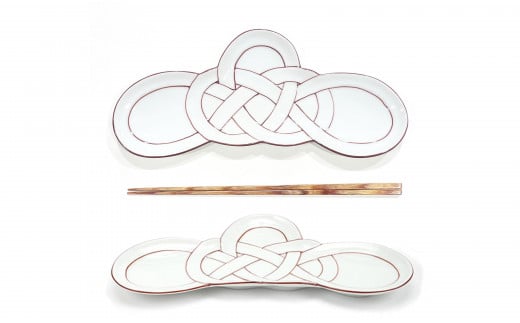 有田焼 朱線 松結び 長皿 前菜皿 2枚セット 24to3 西富陶磁器 A25-477
