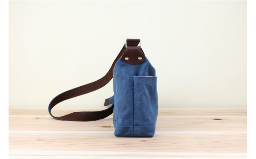 【ブルー】ファスナーショルダーバッグ [アトリエSASSA 富山県 朝日町 34310324-bl] ファスナー 鞄 かばん カバン 帆布 革 おしゃれ 手作り シンプル レザー