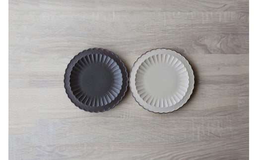 - 有田焼 菊彫6寸和皿 18cm プレート 2枚セット【山忠】食器 器 うつわ 和食器 ベージュ ブラック 菊割 リム A35-295