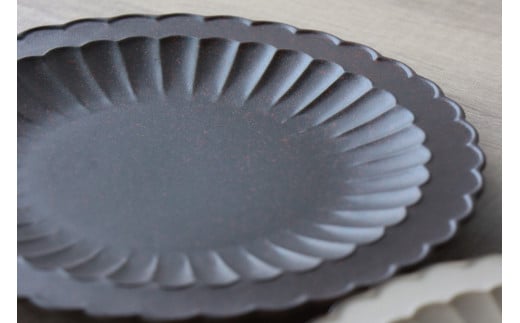 有田焼 菊彫6寸和皿 18cm プレート 2枚セット【山忠】食器 器 うつわ 和食器 ベージュ ブラック 菊割 リム A35-295