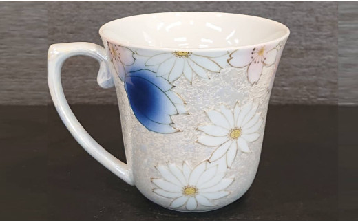 ブルーが映えるチェリーブラッサムのマグカップ 有田焼 中山陶和堂 A35-115