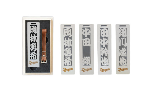 - ステンレス製ネームプレート 牛本革ベルト付属 マット仕上げ(桐の箱付き) 和風角文字【中日ドラゴンズコラボ】【 岐阜県 可児市 選べる デザインフォント 頑丈 錆に強い サンドブラスト加工 キーホルダー ギフト 雑貨 シンプル 】