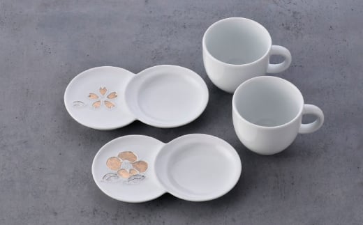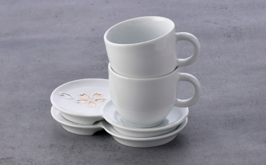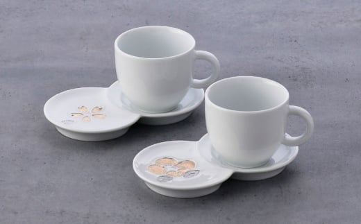 - 【波佐見焼】ペア茶碗・デミタスカップ・小皿 ゴールド プラチナ 桜 椿【陶もと/不二商店】 [NB133]