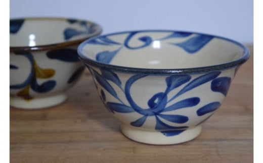 - <陶眞窯>染付唐草文(4寸マカイ2個セット)
