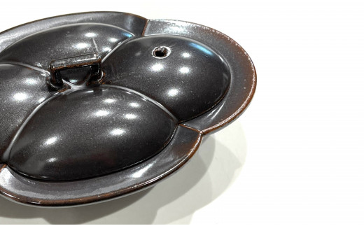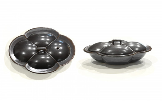 - 有田焼 黒釉 木瓜 蓋付耐熱皿 直火OK 24to3 西富陶磁器 A20-406