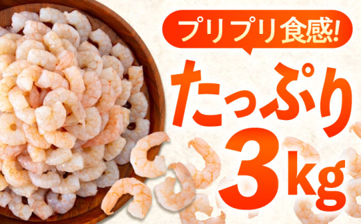 【全6回定期便】 冷凍 海鮮 【背ワタ処理済】プリプリむきえび3kg(1kg×3) 広島県福山市/マルケー食品株式会社 えび エビ むきえび 処理済み 3kg[BABC030]