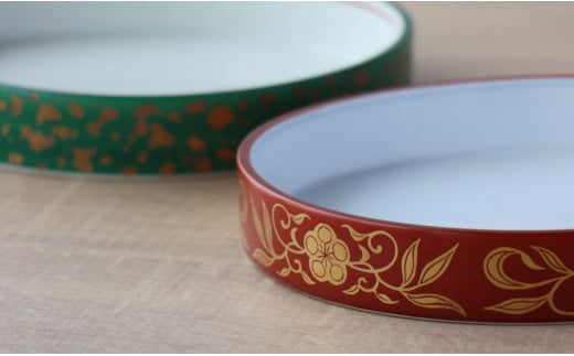 - 有田焼 アウトレット フラット 切立皿 赤唐草/緑金散らし 2枚組 お皿 フラット皿 丸皿 陶器 山忠 A20-518