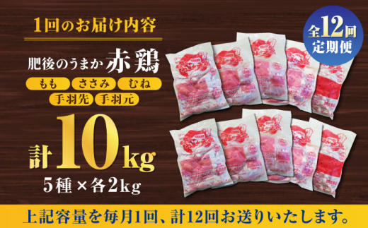 - 【12回定期便】肥後のうまか 赤鶏 5種食べ比べセット(モモ ささみ ムネ 手羽先 手羽元)各2kg【山内飼料 株式会社 熊本営業所】 熊本県 特産品 九州産 [ZAB014]