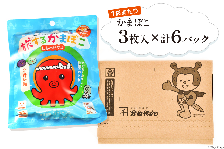 - 旅するかまぼこ しあわせタコ 6個パック [かねせん 宮城県 気仙沼市 20564125] かまぼこ 蒲鉾 常温 おやつ おつまみ 練物 笹かま