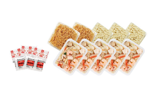 - 【全6回定期便】長崎海鮮具入り ちゃんぽん・皿うどん5食×6回 連続お届けコース チャンポン 麺類 麺 揚げ麺 中華 具材付き 具付き 長崎 ちゃんぽん 長崎ちゃんぽん